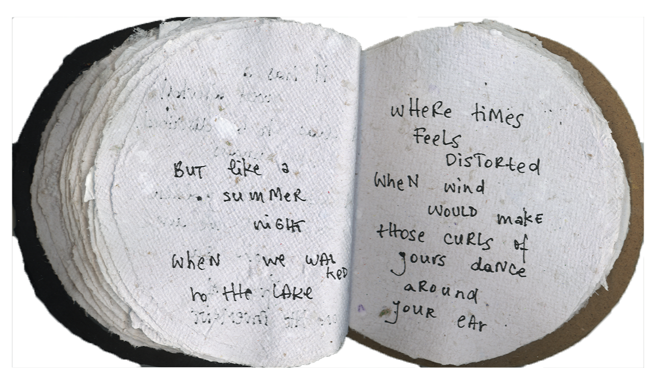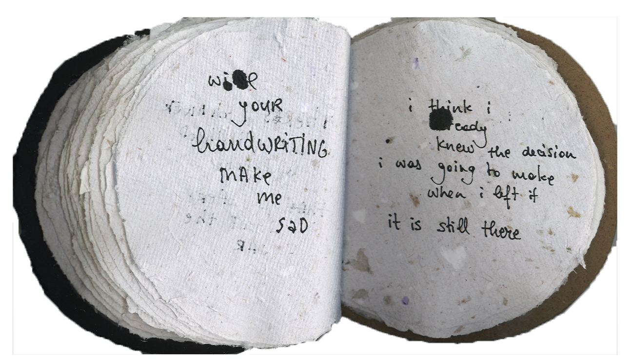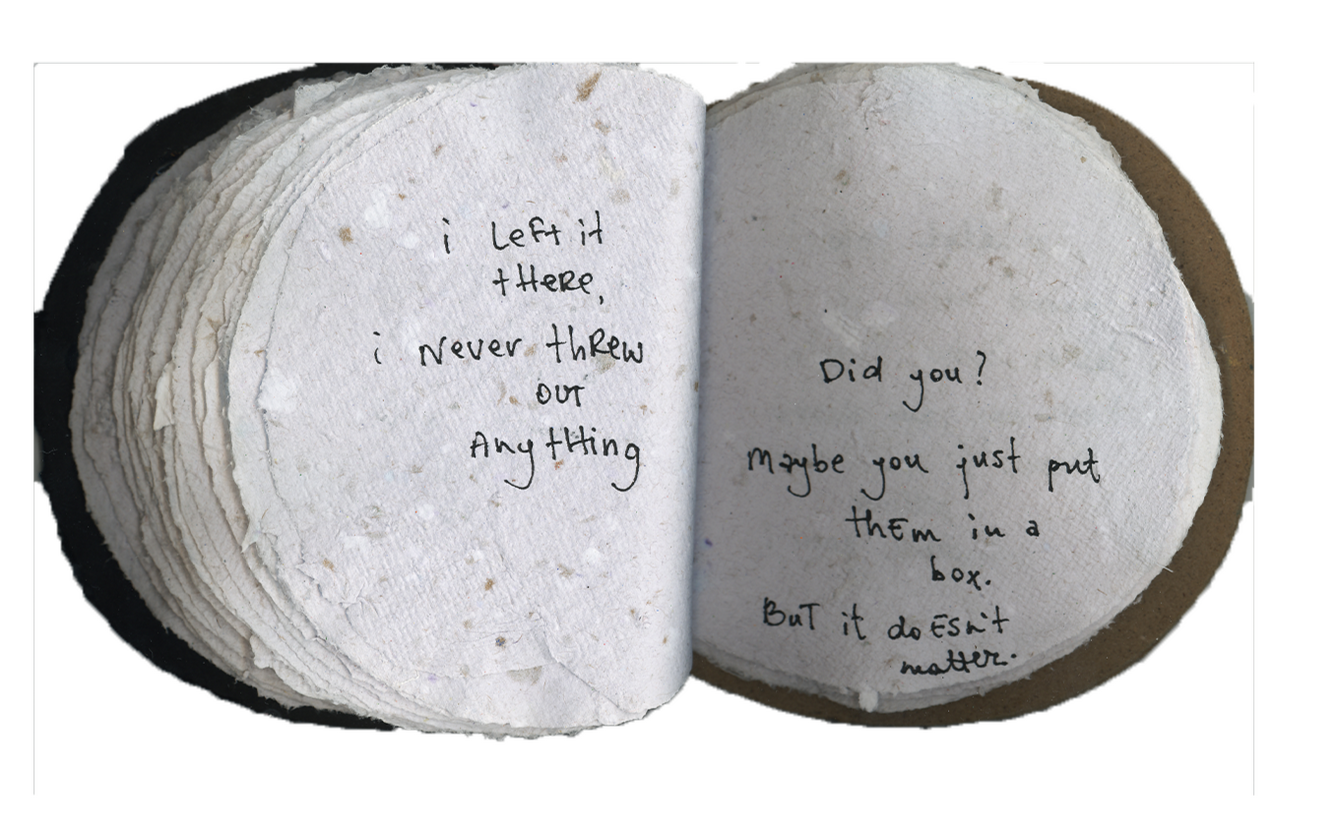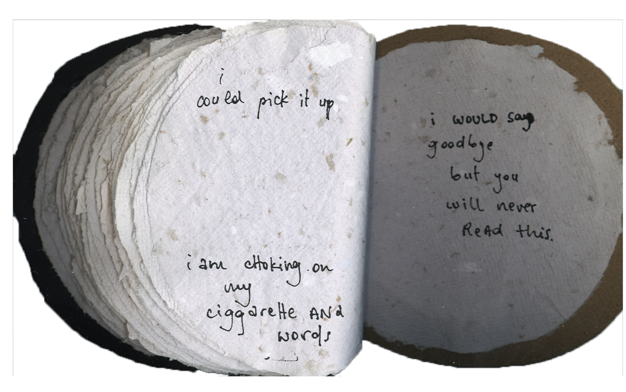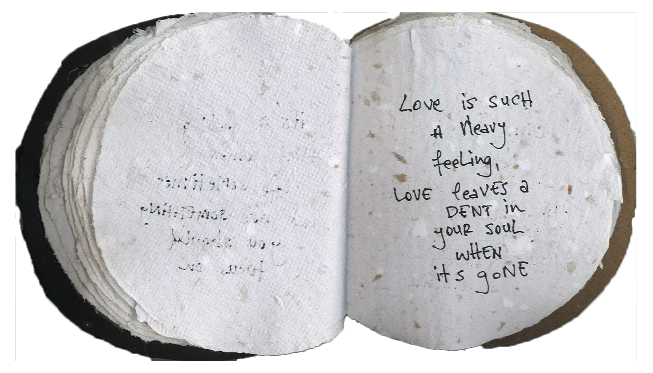 recycled paper made out of letters from past lovers, reflection on missing and longing