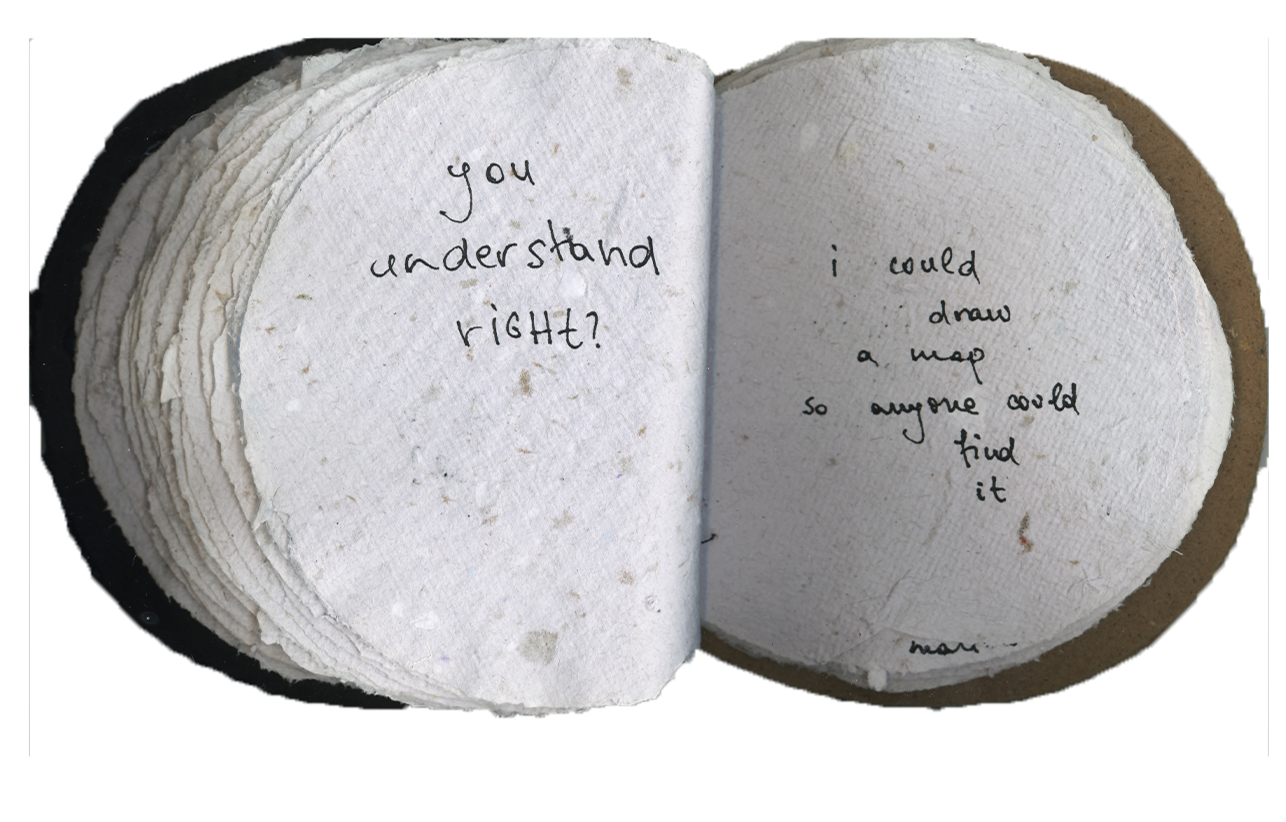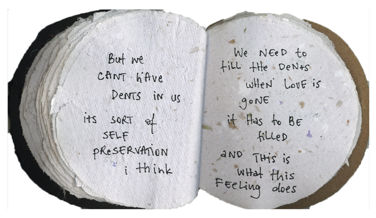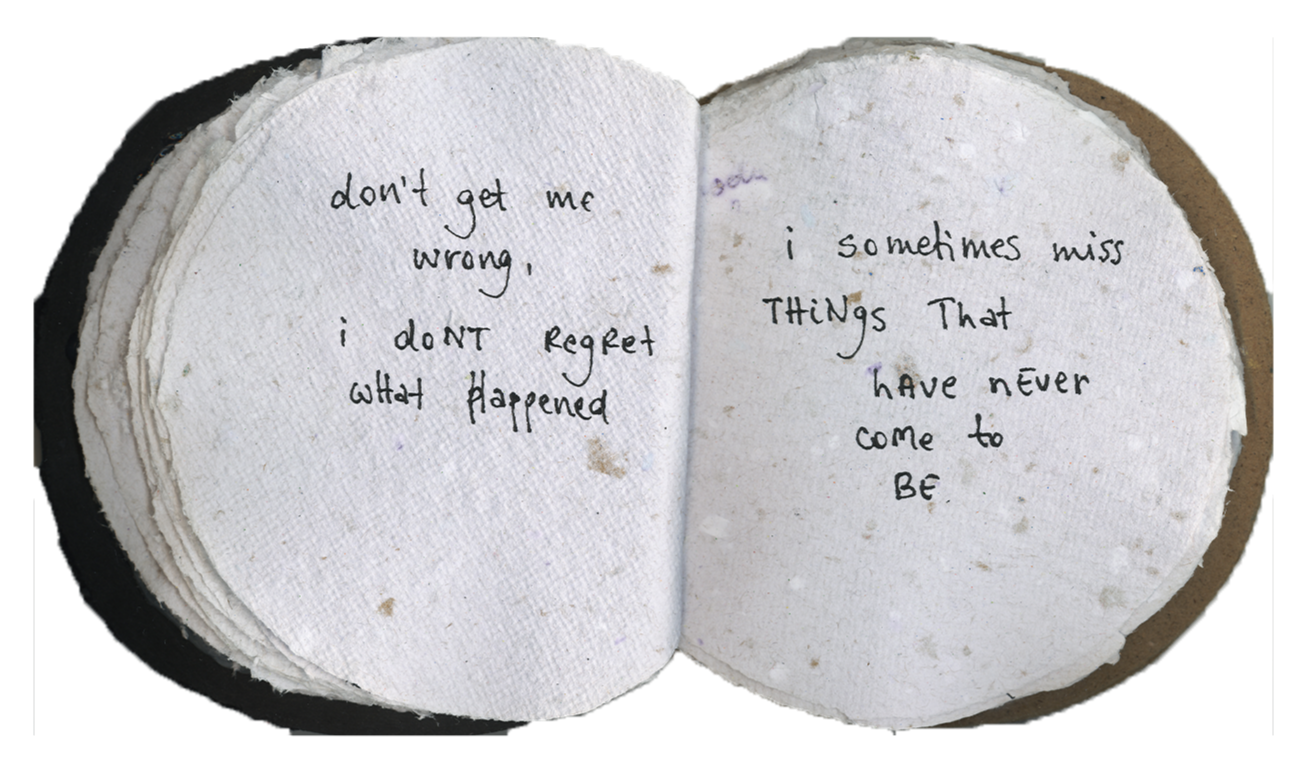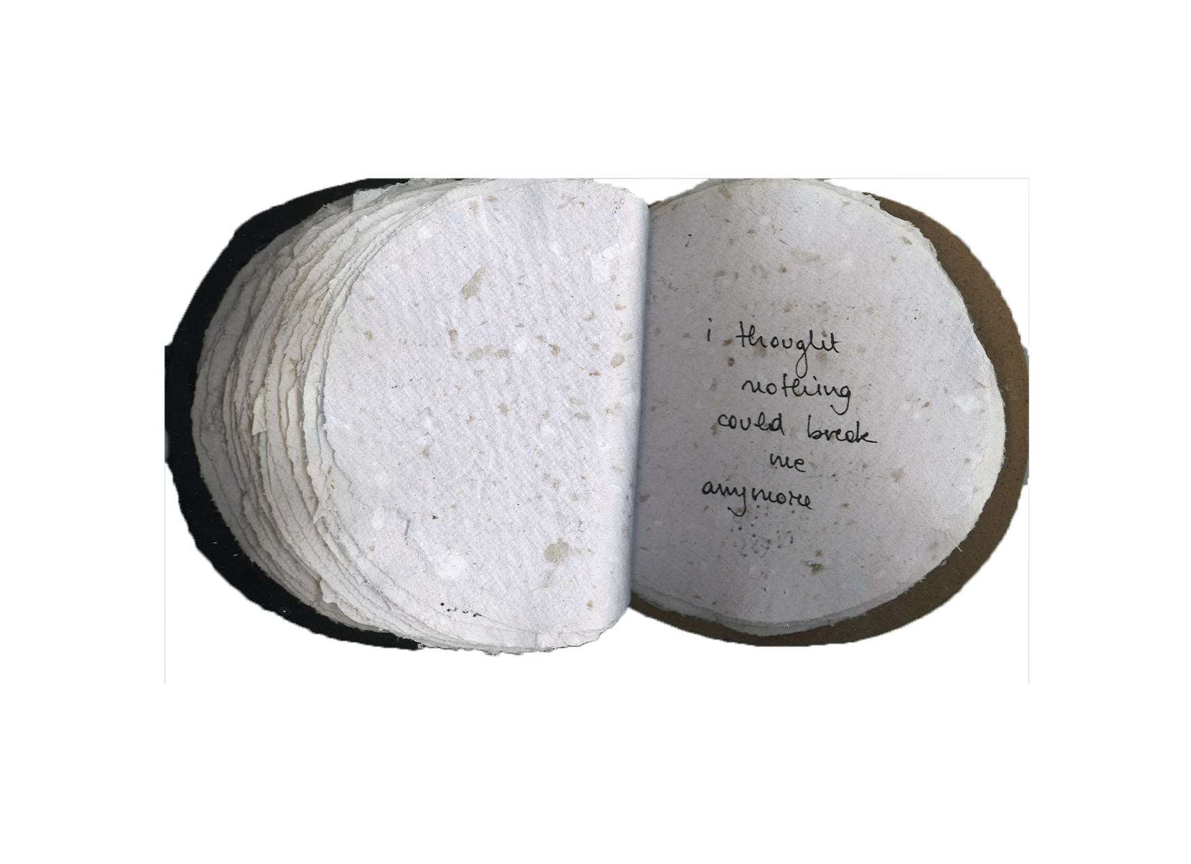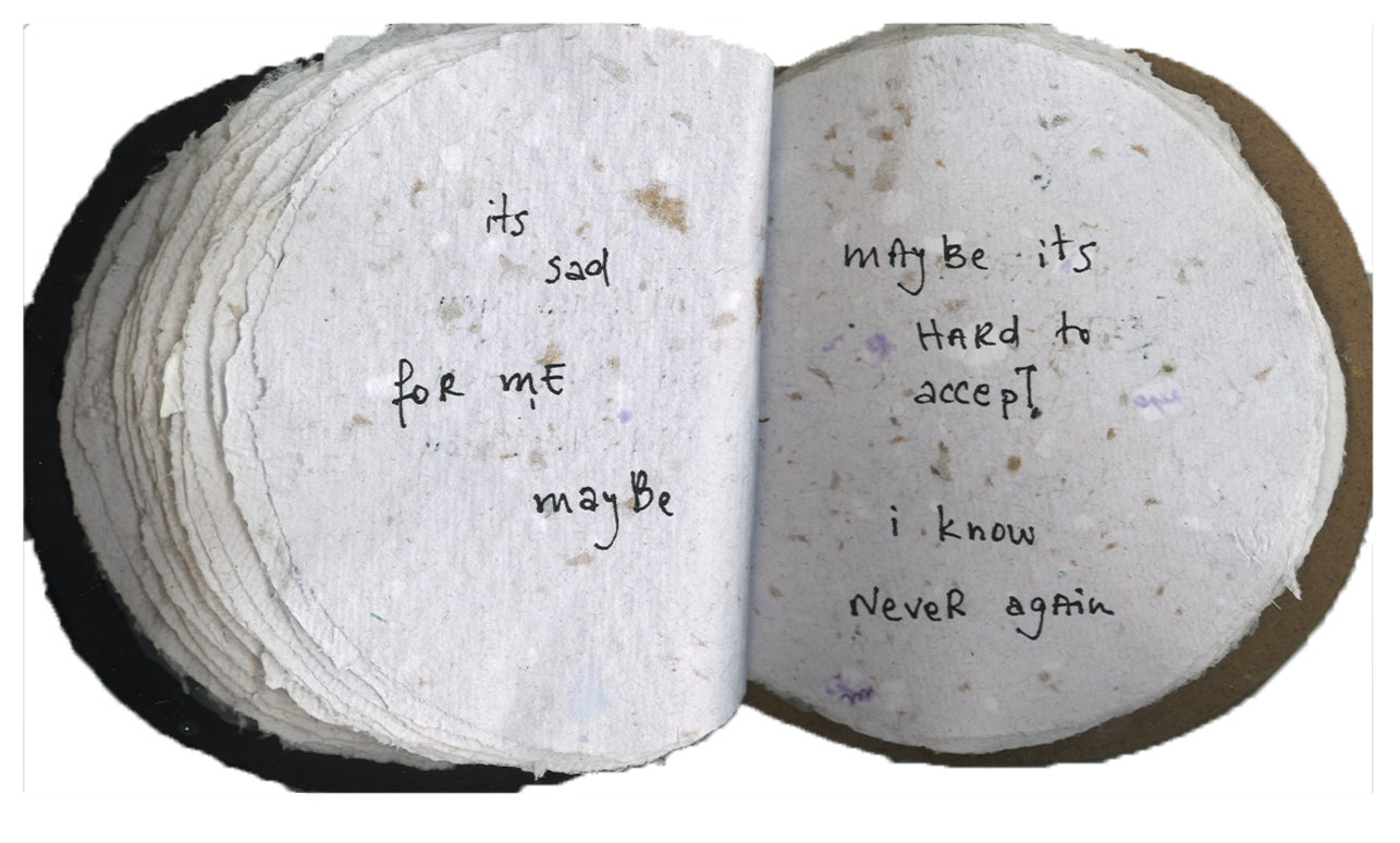 recycled paper made out of letters from past lovers, reflection on missing and longing