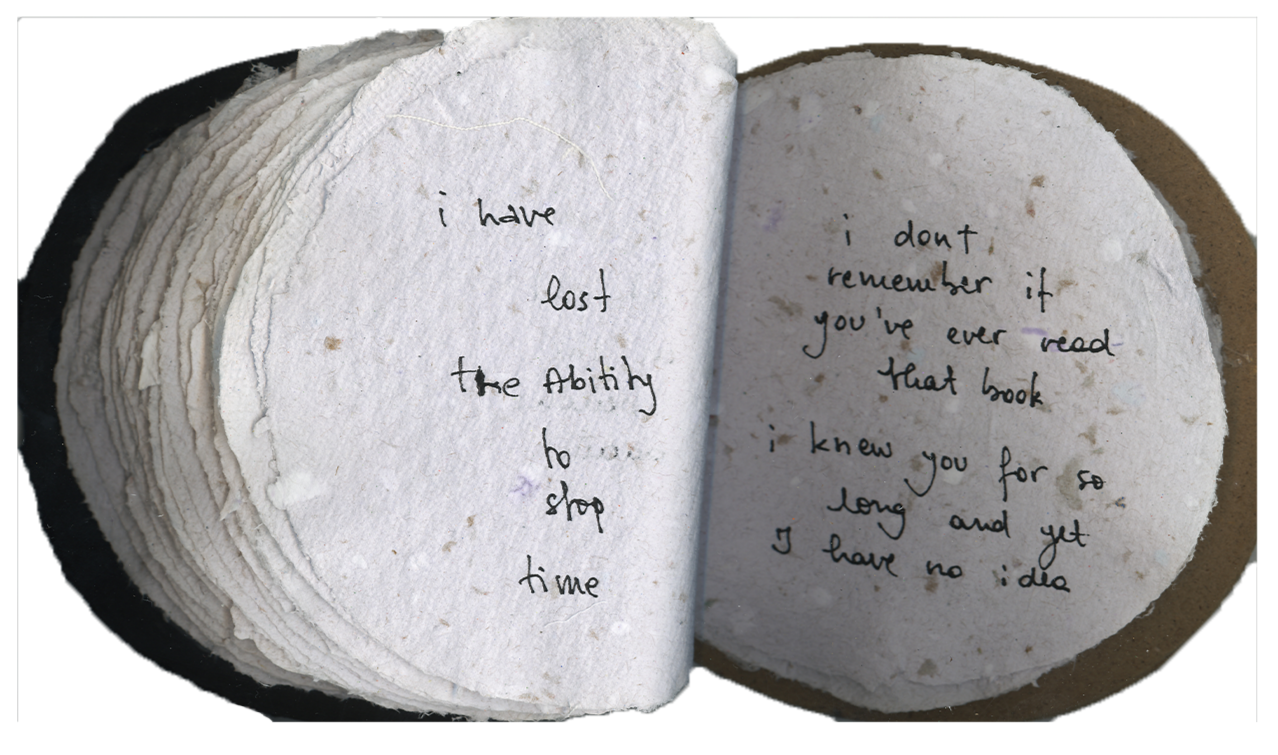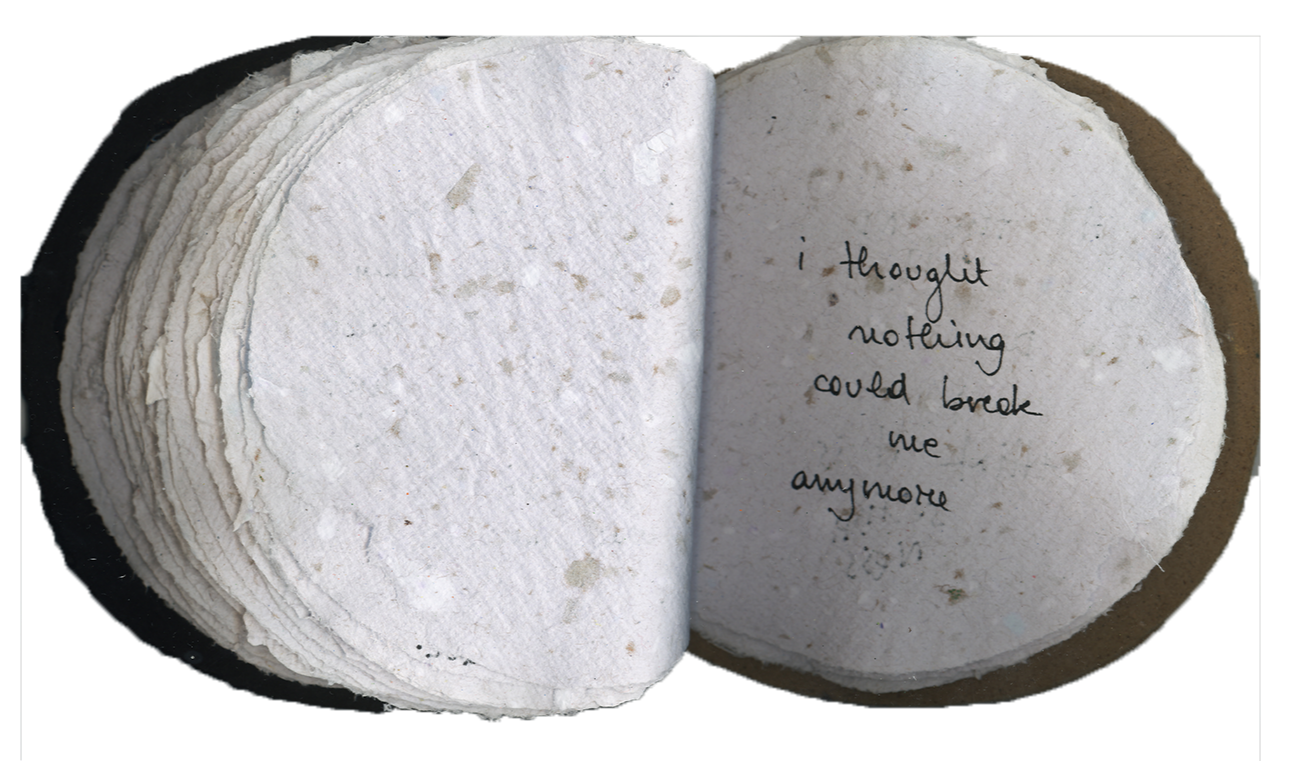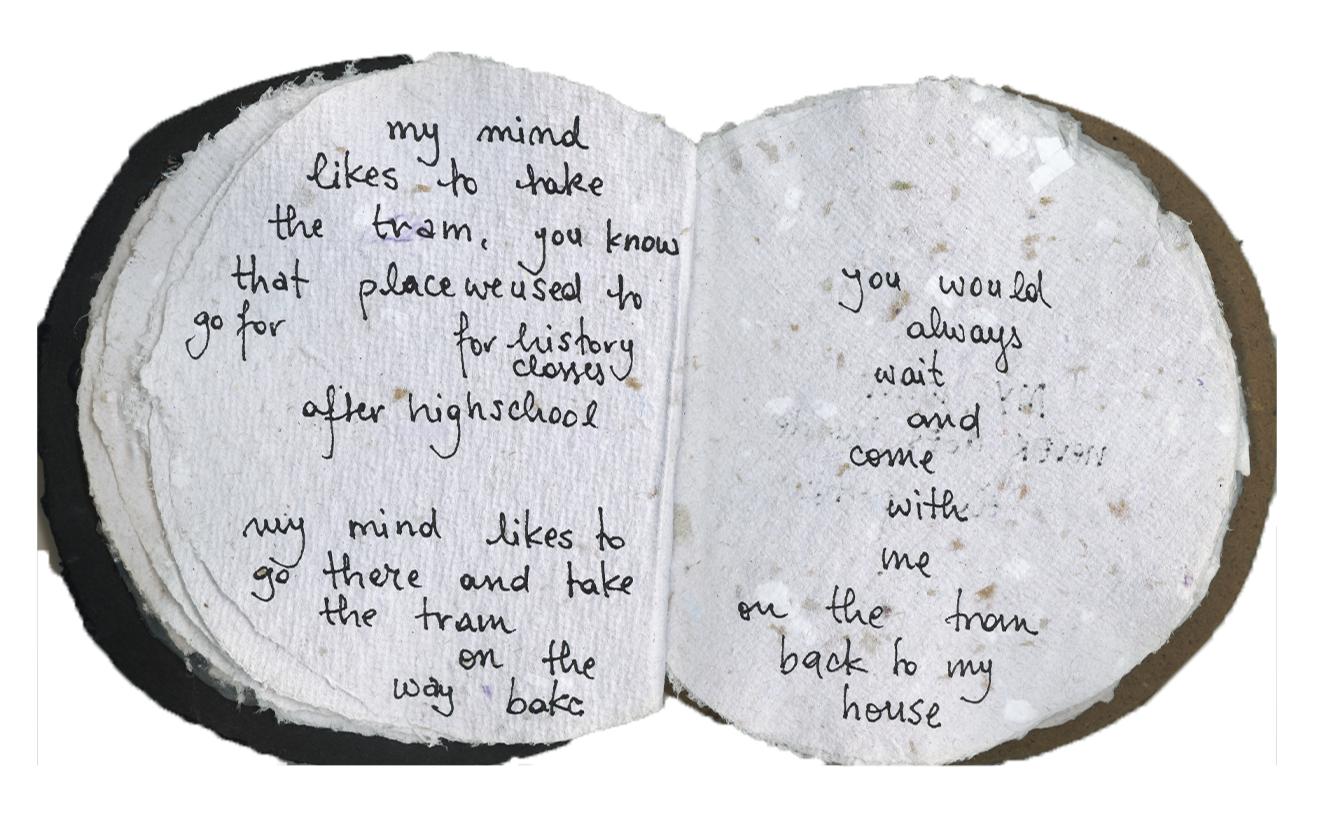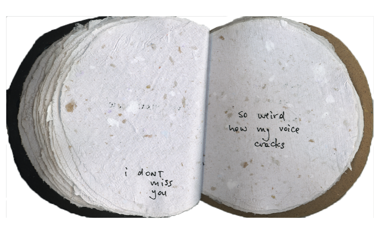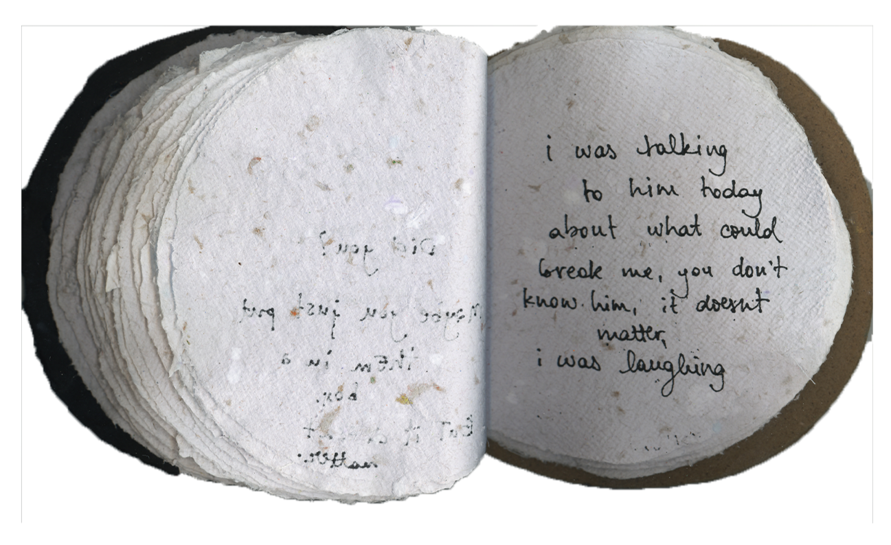 recycled paper made out of letters from past lovers, reflection on missing and longing