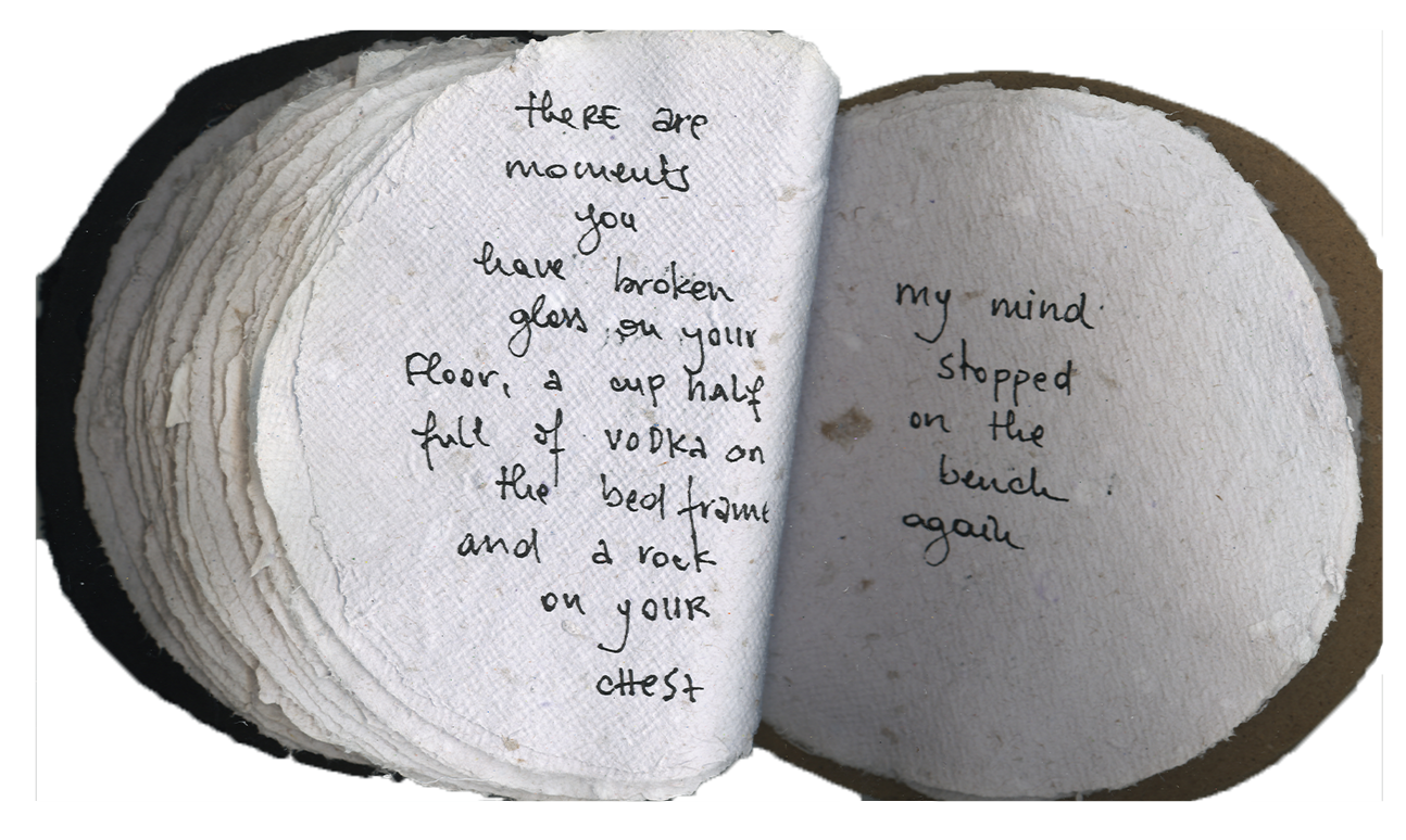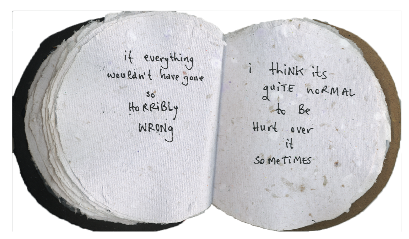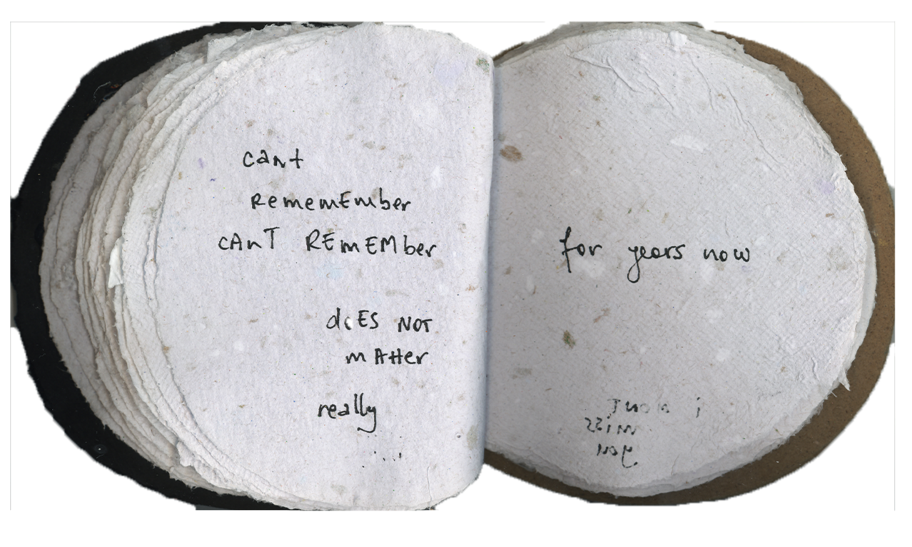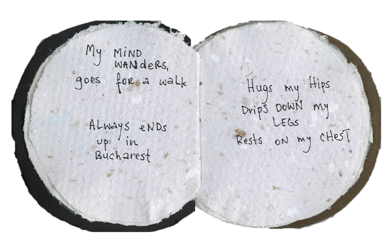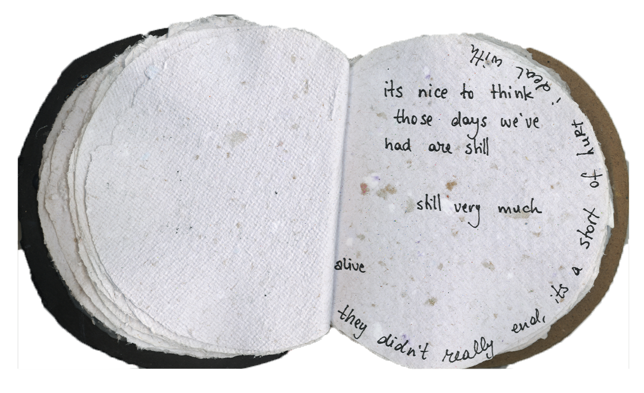 recycled paper made out of letters from past lovers, reflection on missing and longing