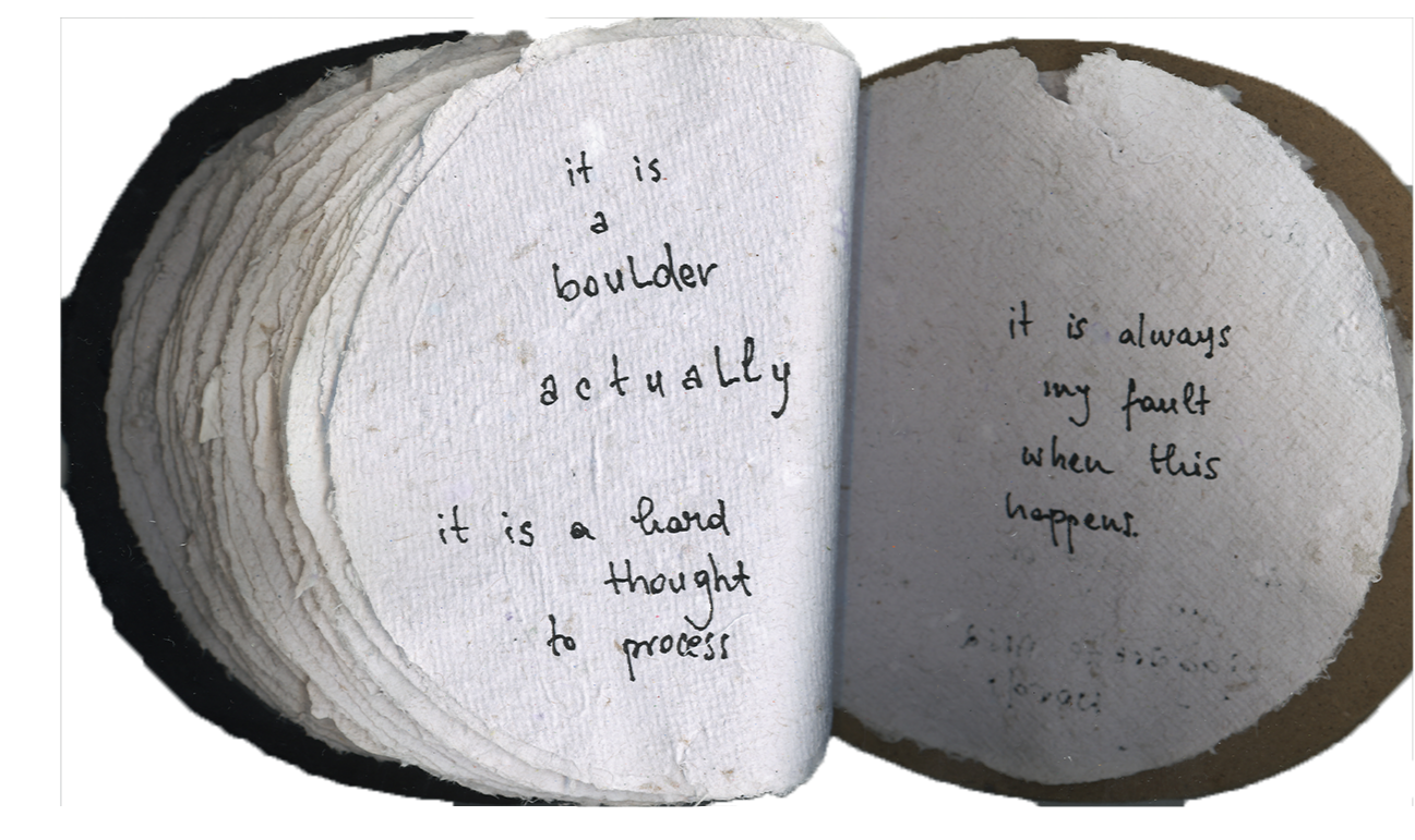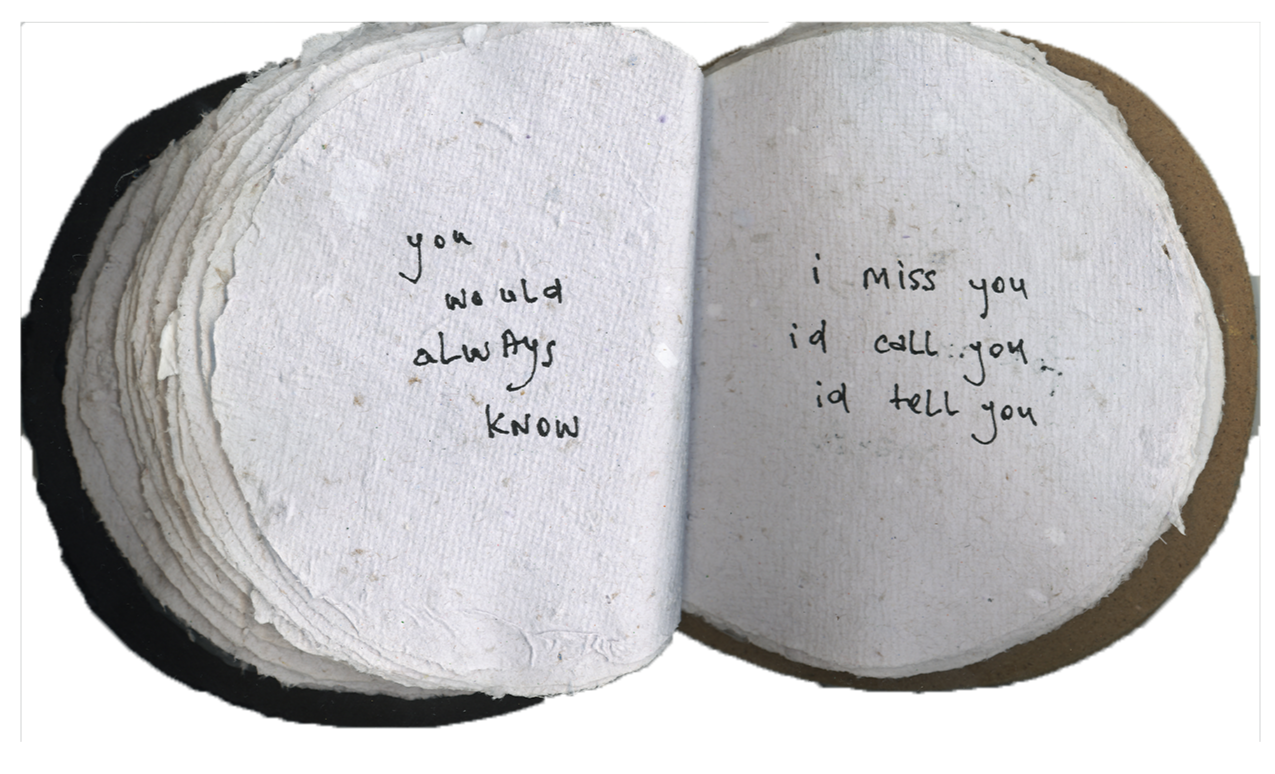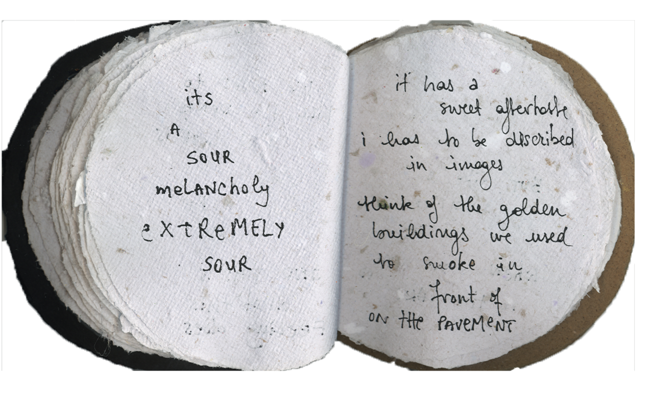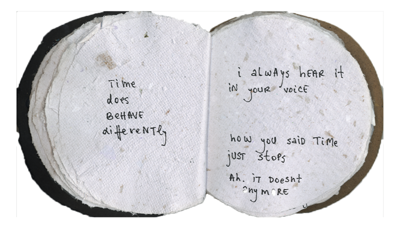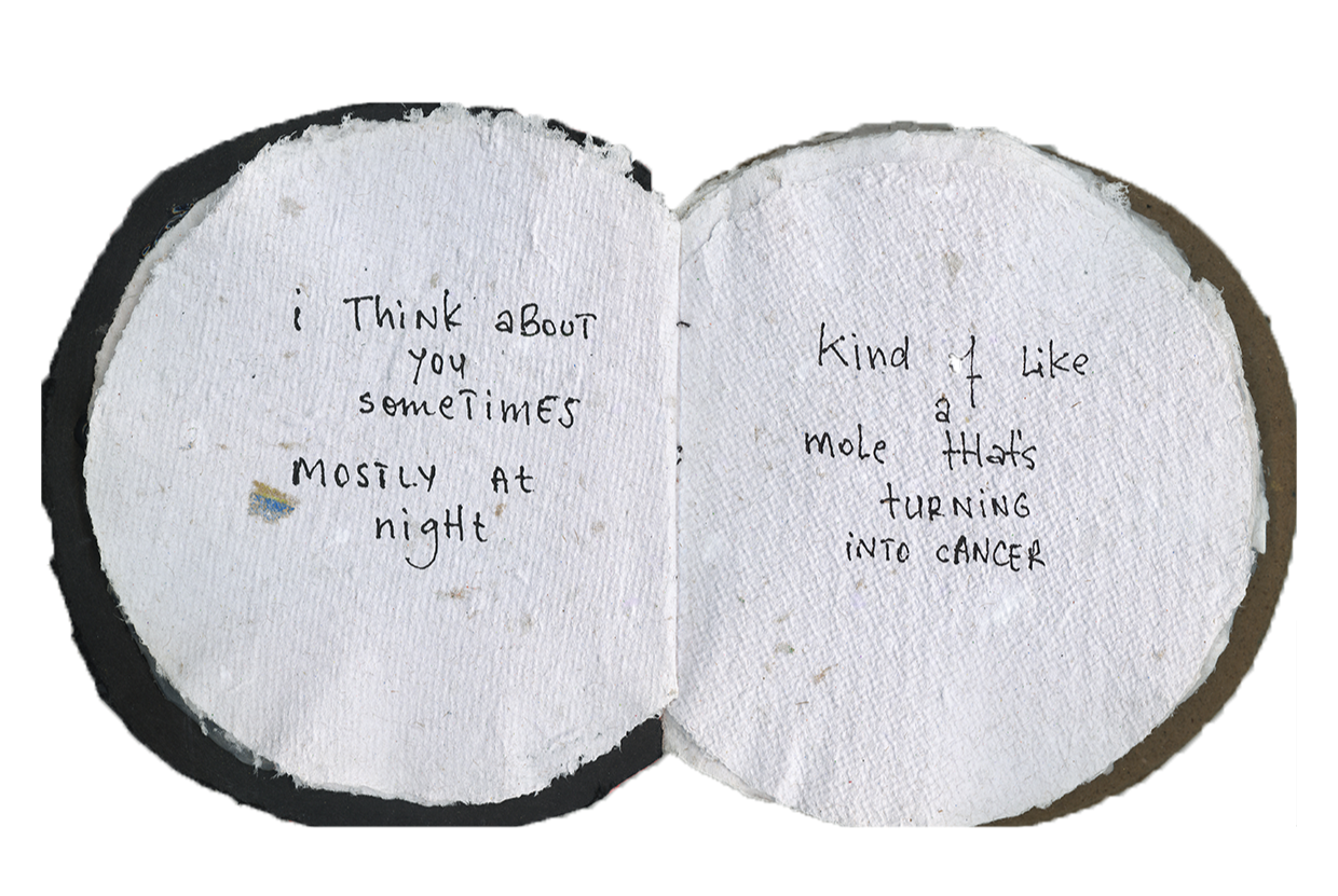 recycled paper made out of letters from past lovers, reflection on missing and longing