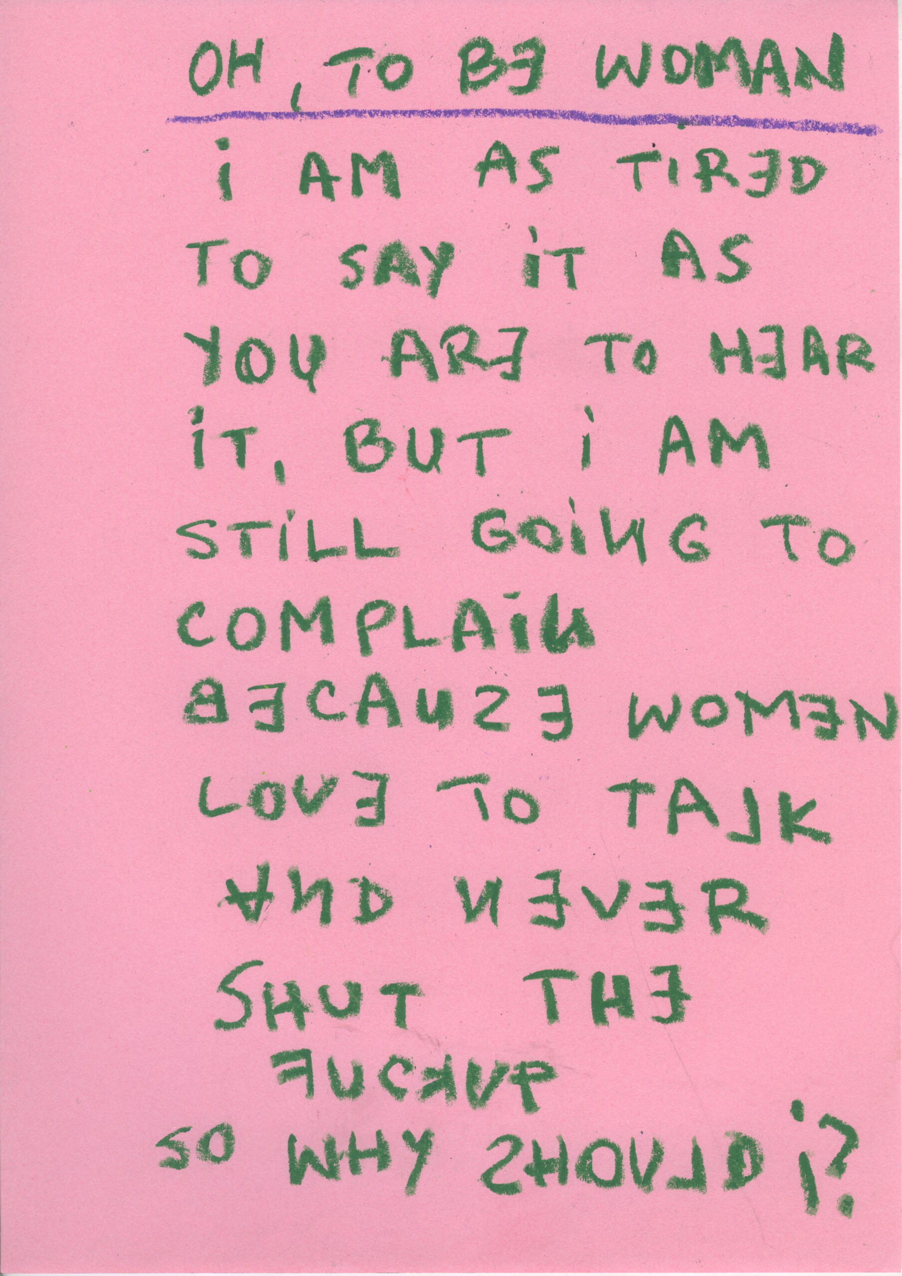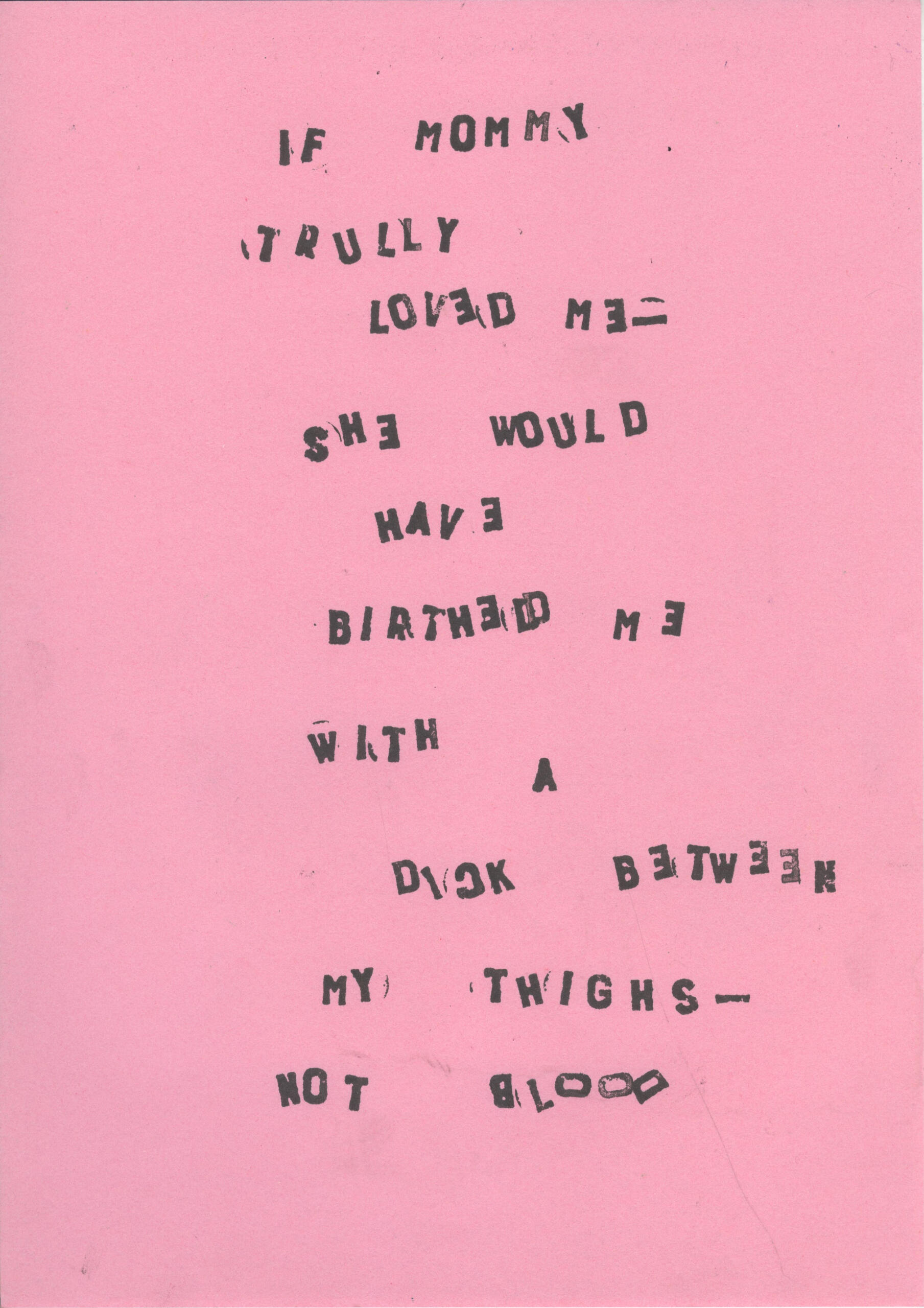 I am a cynical, female bodied, narcissistic, queer, spaceal, Eastern artist.
